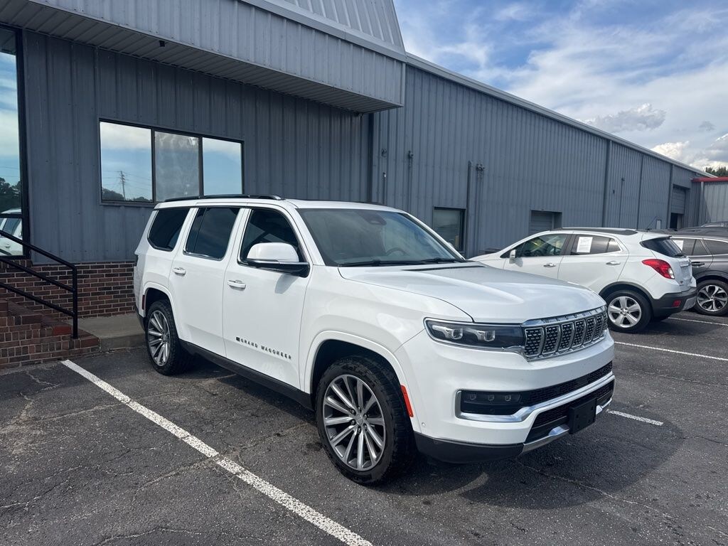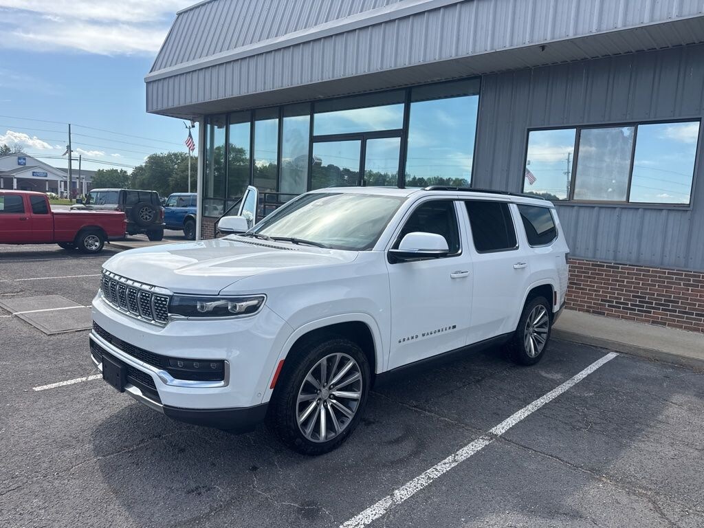 Recent Arrival! Certified. Bright White Clearcoat 2022 Jeep Grand Wagoneer Series II 6.4L V8 8-Speed Automatic Ford Blue Advantage Blue Certified w/3-month/4,000 mile Comprehensive Limited Warranty, Pre-Collision Assist with Automatic Emergency Braking w/Pedestrian Detection, Adaptive Cruise Control/Lane Centering System, Bluetooth (Handsfree) Phone, Google Assistant, Google Maps, Google Play, Apple CarPlay® and Android AutoTM Wireless Compatibility, SiriusXM Satellite Radio, Voice Controlled iPod/Mp3 input/USB Port, Terrain Management System, Heated/Cooled Front Seats, Heated Rear Seats, Keyless Entry Keypad, Rear Entertainment System, Alloy Wheels, Anti-Lock Brakes, Bluetooth, Cruise Control, Fold-Flat Seats, Heated Seats, Keyless Entry, Leather Seats, Moonroof, Navigation, Power Door Locks, Power Mirrors, Power Windows, Power Driver's Seat, Power Seats, Power Sliding Rear Window, Rear Window Defroster, Satellite Radio, Side Airbags, Sunroof, Third Row, Tinted Glass, Tilt Wheel, 1-OWNER-CLEAN CARFAX, LOCALLY TRADED, NEW TIRES!, 360-Degree Camera, Lane Keeping System, Automatic High-Beam Headlamps, Wi-Fi Hotspot, 2nd Row Captain's Chairs, Wireless Charging Pad, Blind Spot Information System (BLIS), Rain-Sensing Windshield Wipers.