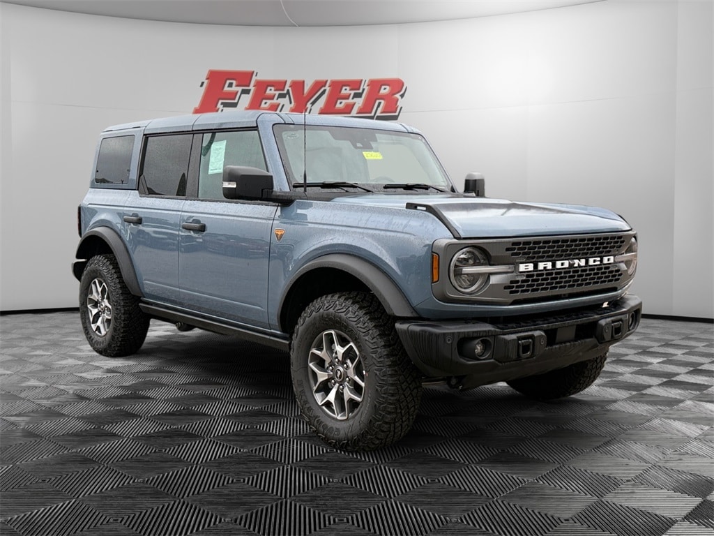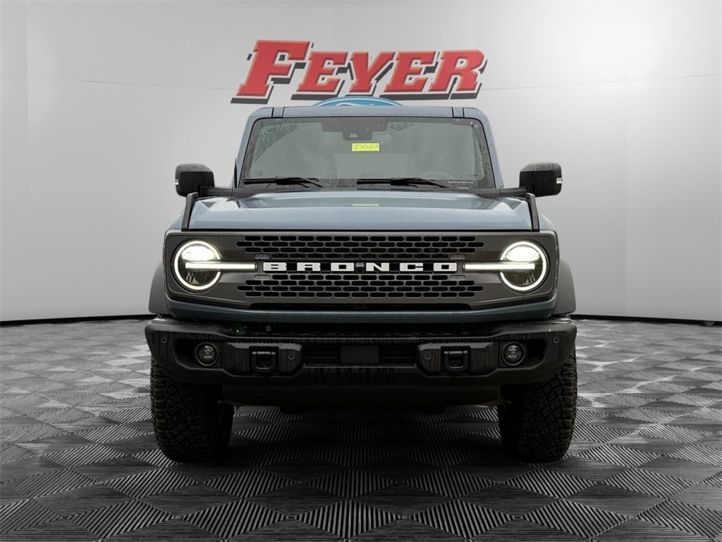 Azure Gray Metallic Tri-Coat 2025 Ford Bronco Badlands 4WD 10-Speed Automatic 2.7L EcoBoost V6 Pre-Collision Assist with Automatic Emergency Braking w/Pedestrian Detection, Adaptive Cruise Control/Lane Centering System, SYNC 911 Assist w/Vehicle Health Report, SYNC Voice Activated Communications, Bluetooth (Handsfree) Phone, Waze Navigation Integration, Apple CarPlay® and Android AutoTM Wireless Compatibility, 13.2" Color LCD Touchscreen, Alexa Built-In, SiriusXM Satellite Radio, Voice Controlled iPod/Mp3 input/USB port, Ford CoPilot 360, Terrain Management System, 911 Assist, 360-Degree Camera, Lane Keeping System, Automatic High-Beam Headlamps, G.O.A.T. Mode, FordPass Connect w/5G Modem, Wi-Fi Hotspot, Wireless Charging Pad, Blind Spot Information System (BLIS), Rear View Camera, Bronco Badlands, 2.7L EcoBoost V6, 2-Door Intelligent Access w/Lock/Unlock, 360-Degree Camera, Adaptive Cruise Control, Ambient Footwell Lighting, Auto High-Beam Headlamps, Auto High-beam Headlights, Body Color-Painted Hard Top, Connected Navigation, Dr & Pass Illuminated Sliding Visor Vanity Mirrors, Dual Smart Charging USB Ports, Dual-Zone Electronic Automatic Temperature Control, Equipment Group 334A Lux Package, Evasive Steering Assist, Front Parking Sensors, Front Row Heated Seats, Hard Top Sound Deadening Headliner, Heated steering wheel, Information on Demand Panel, Marine Grade Vinyl Heated Bucket Seats, Power Outlet - Back Side of Center Floor Console, Radio: B&O Sound System by Bang & Olufsen, Rear Parking Sensors, Rear-Window Defroster & Washer, Sideview Mirrors, Universal Garage Door Opener, Wheels: 17" Carbonized Gray-Painted Aluminum.